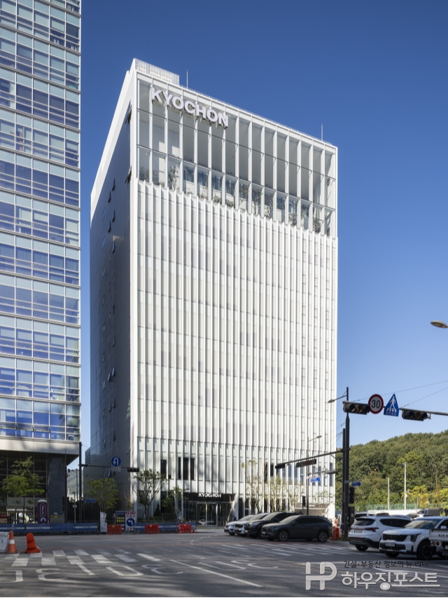 경기 성남시 수정구에 위치한 교촌F&B 사옥 ‘교촌 1991 빌딩(WHITE STRIPE)’ 전경. 유리 외벽의 반사와 왜곡을 최소화하기 위해 층별로 다른 입면 패턴을 적용했고, 도시 속 절제된 미학을 구현했다. 2025 한국건축문화대상 민간부문 대통령상을 수상했다. (사진=종합건축사사무소 연미건축·사진작가 남궁선 제공)