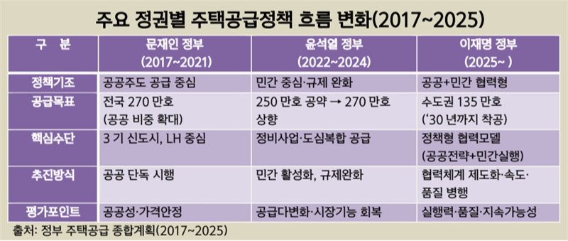 주요 정권별주택공급정책 흐름 변화(그래픽=하우징포스트 디자인팀)