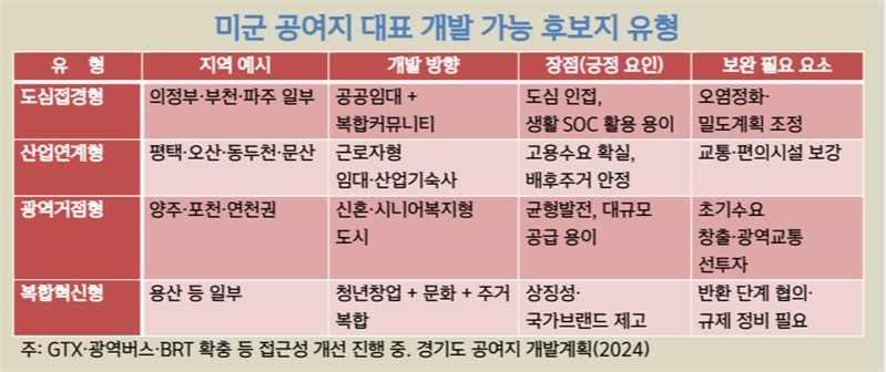 특히 수도권 북부의 경우 군사시설 이전과 함께 ‘교통 + 산업 + 주거’ 복합 축으로 재편되는 개발 환경이 조성되고 있어, 옛 공여지가 '미래형 공공주거도시'로 전환될 가능성은 충분하다는 평가가 높아지고 있다.