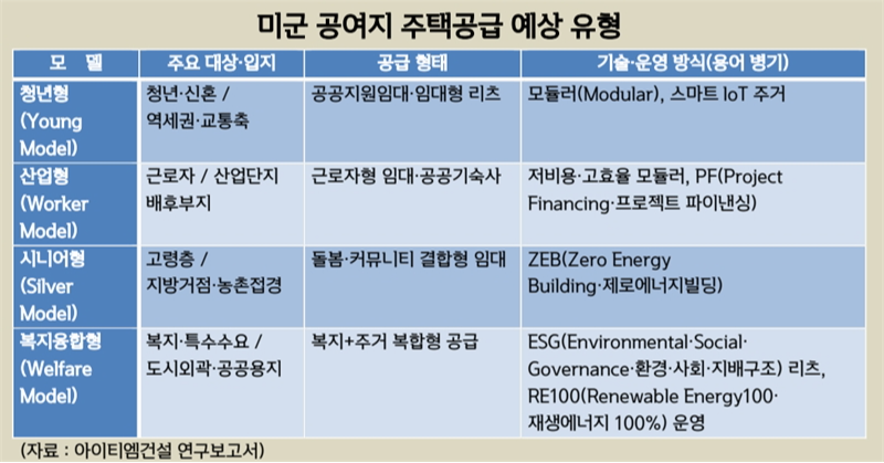 미군 공여지 주택공급 예상 유형 (그래픽=하우징포스트 디자인팀)