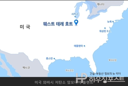 미국 인디애나주에 조성될 저탄소 암모니아 플랜트 사업 위치도. 국토교통부는 한·미 정책금융을 바탕으로 추진되는 해당 플랜트를 계기로 친환경 인프라 분야에서 우리 기업의 미국 수주 지원을 강화한다는 방침이다. (자료=삼성E&A)