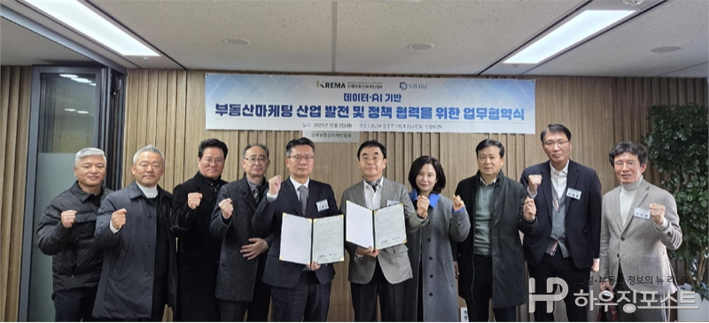 [하우징포스트=오명근 기자] 부동산마케팅협회(회장 장영호)가 9일 두레시닝(주)과 업무협약을 맺고 빅데이터·AI 기반 분석 체계를 정비한다. 빠르게 변하는 시장 환경을 고려해 회원사 지원과 정책 분석 역량을 강화하려는 움직임이다. 부동산마케팅협회는 9일 서울 강남구 건설회관에서 두레시닝과 ‘데이터 및 인공지능(AI) 기