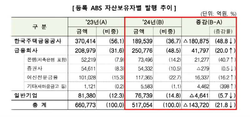 "지난해 ABS 발행 22% 감소…MBS는 절반 급감"