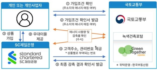 [하우징포스트=문승용 기자] 국토교통부가 건물 부문의 탄소중립을 유도하기 위해 전기 사용량을 줄이면 우대금리를 더해주는 금융상품을 선보였다. 기본이율과 실적 우대, 에너지 절감률에 따른 추가금리를 모두 충족할 경우 최고 연 7.2%의 금리를 받을 수 있다. 국토부는 12일부터 23일까지 SC제일은행 모바일 애플리케이션
