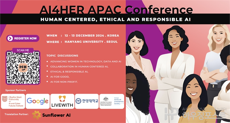 [하우징포스트=안재만 기자] AI 분야에서 여성 리더십 강화를 목표로 하는 비영리 단체 '호주 여성 인공지능(Women in AI, 이하 WAI)'의 호주 지부가 오는 12일부터 13일까지 이틀간 한양대학교에서 AI4HER APAC 컨퍼런스를 개최한다. 이번 컨퍼런스는 사람 중심의 윤리적이고 책임 있는 AI 기술 개발을