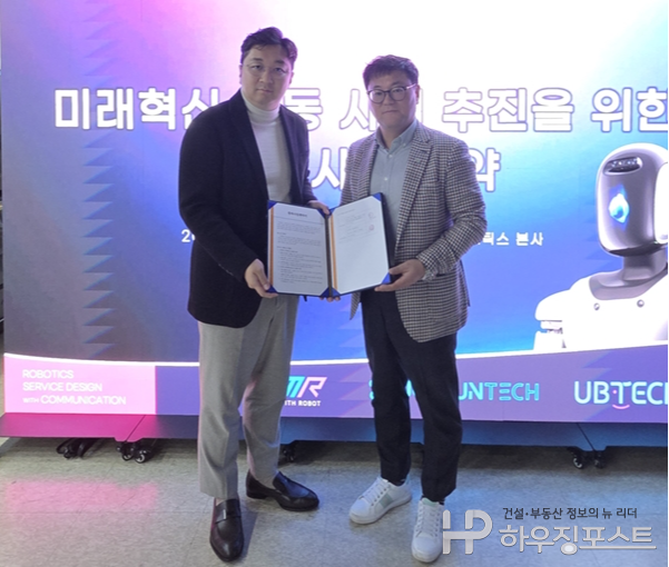 [하우징포스트=오명근 기자] AI 로봇 전문기업 제이엠로보틱스와 스마트제조 기업 주건테크가 손잡고 한국형 로봇 제조 생태계 구축에 나섰다. 양사는 4일 서울 상암동 제이엠로보틱스 본사에서 AI 로보틱스 공동사업 계약을 체결하고, 설계에서 생산·인증·유통까지 이어지는 국내형 원팀체제를 가동했다. 내년 1분