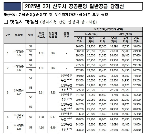 [하우징포스트=임재인 기자] 공공분양 청약저축에 얼마를 넣어야 당첨될 수 있는지, 한국토지주택공사(LH)가 처음으로 기준을 공개한다. 오는 21일 발표되는 남양주 왕숙 A1 블록을 시작으로, 올해 상반기 진행된 3기 신도시 주요 지구의 당첨선도 함께 공개할 예정이다. LH는 12일 공공분양 일반공급 당첨자의 ‘청약저축