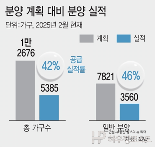 2월 분양 계획 물량 대비 실제 분양 실적 비교(그래픽=하우징포스트 디자인팀)