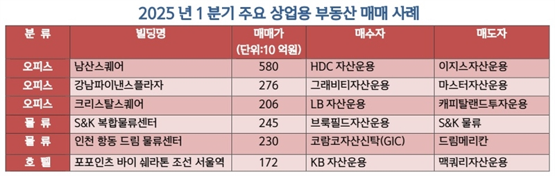 2025년 1분기 주요 상업용 부동산 매매 사례(그래픽=하우징포스트 디자인팀)
