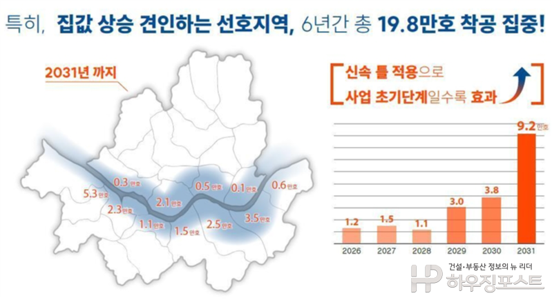 또한 서울시가 제시한 31만 가구 목표는 ‘착공’ 기준이라는 점에서 실제 입주 시점은 2030년대 중반 이후에야 가시화될 가능성이 높다. 중산층·청년·신혼부부 등 실수요자가 접근할 수 있는 공공주택과 임대주택 비중을 병행하지 않는다면, 공급 확대 효과가 특정 계층에 편중될 수 있다는 우려도 제기된다.